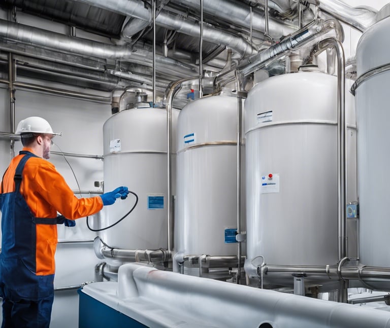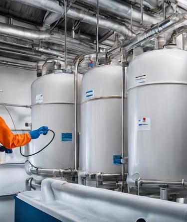 Limpieza y desinfección de depósitos, acumuladores, redes de agua, condensadores y torres de refrigeración.